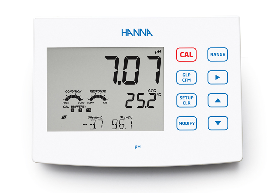 Option 2 :Notre pH-mètre de paillasse pH/ORP (HI2621) avec deux modes de fonctionnement (standard et basique) et la possibilité d’enregistrer, stocker et transférer les données GLP.