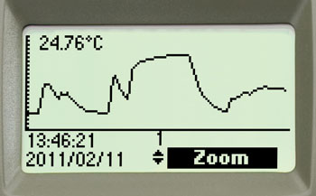 Capacité graphique - Le graphique de tendance avec la date et l'heure de l'échantillon peut être visualisé sur l'écran ou transféré sur un PC.