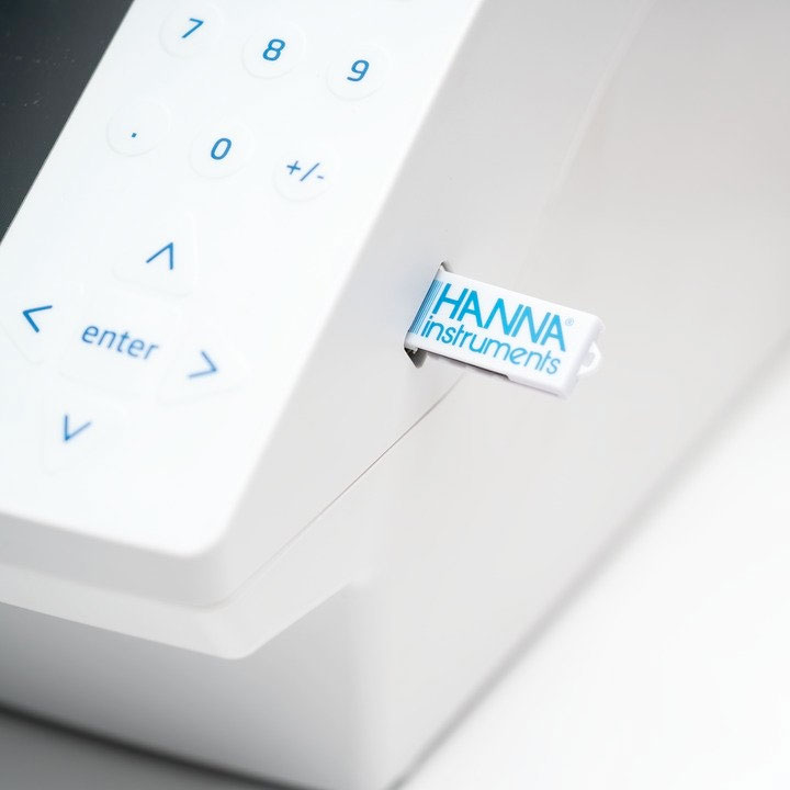 Un port USB idéalement situé sur le côté de l'appareil est utilisé avec une clé USB ou une connexion directe à un PC pour le transfert des méthodes de titrage, des rapports et des mises à niveau logicielles. Les rapports peuvent être convertis dans un format convivial LIMS à l'aide de notre logiciel compatible PC.